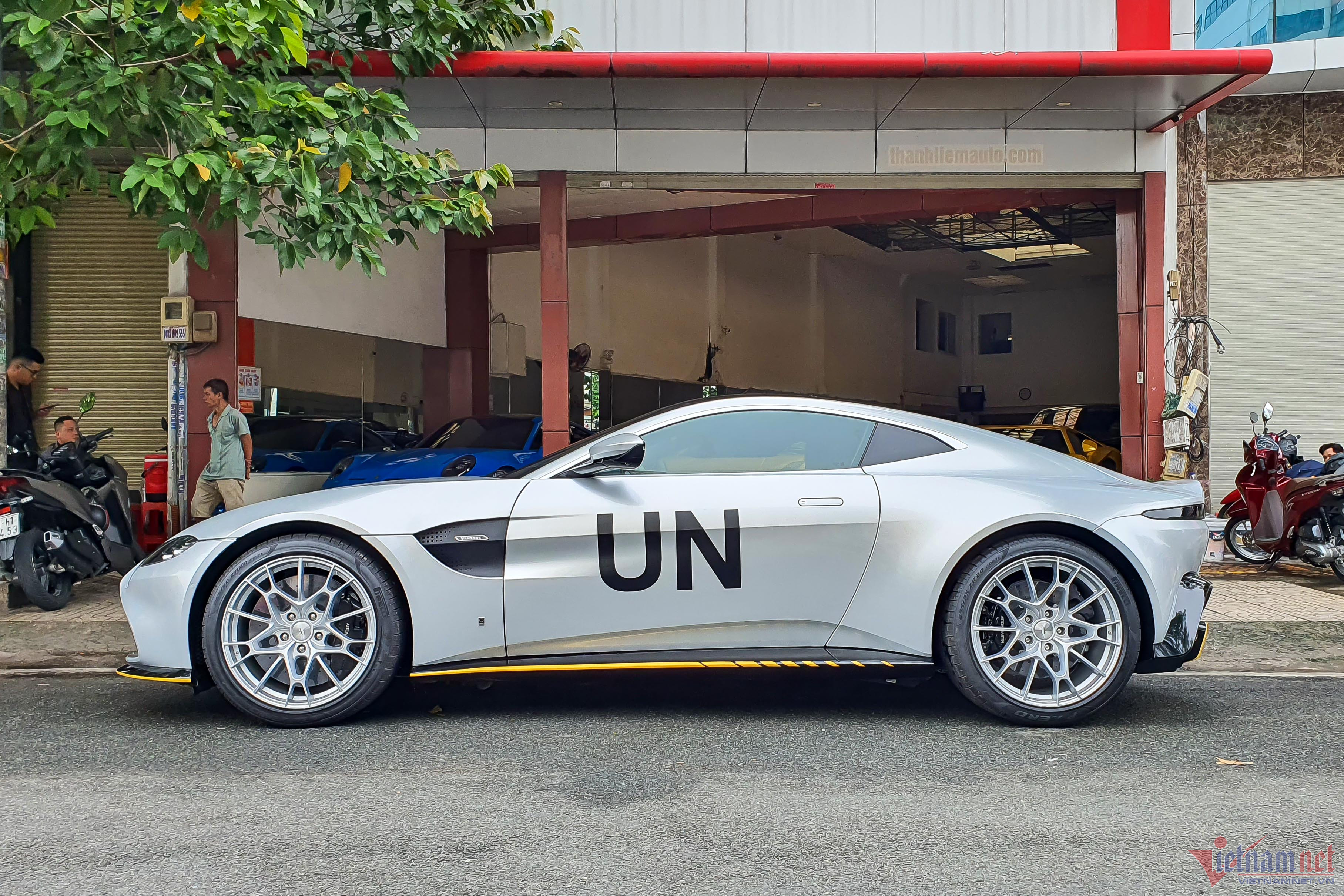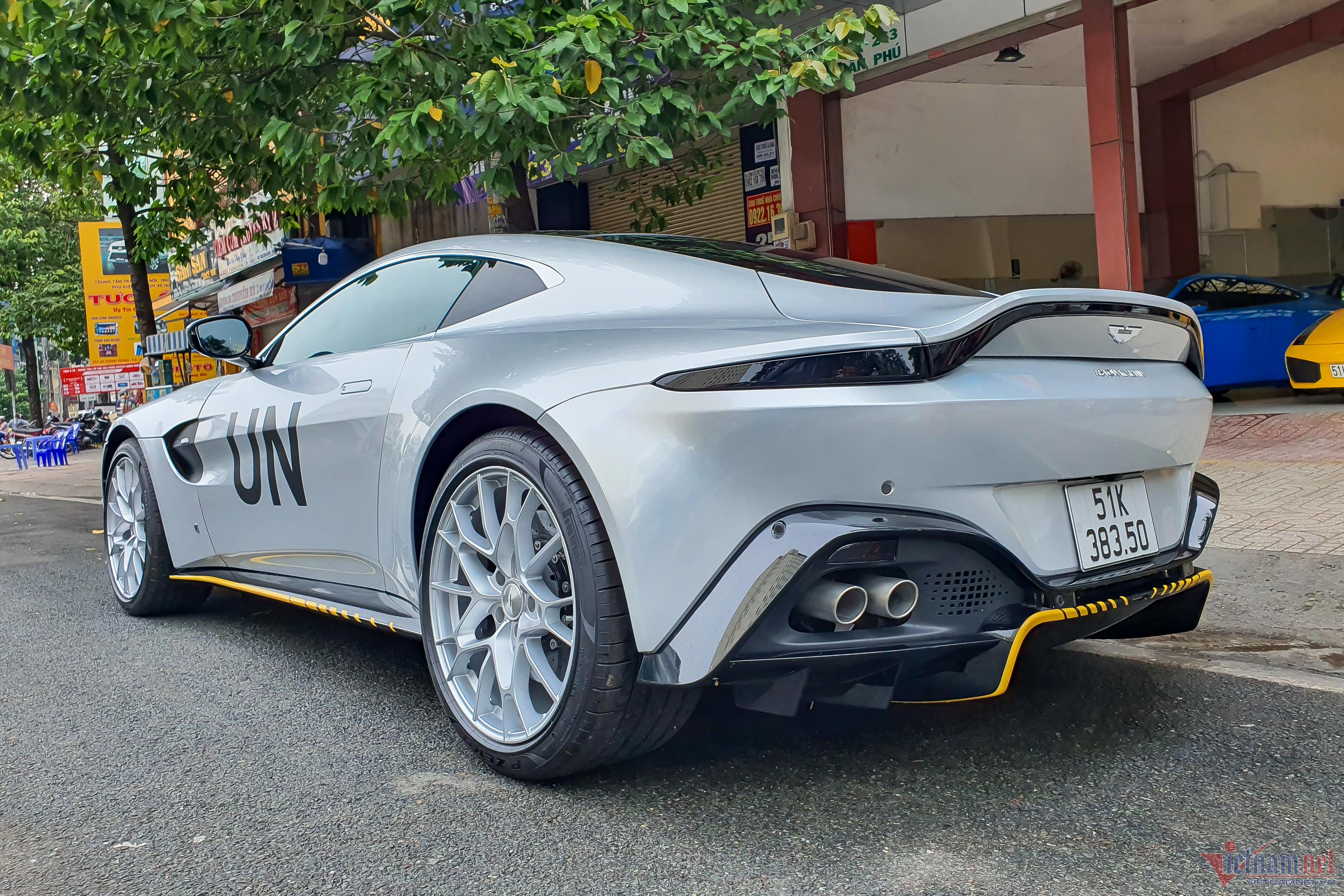 Xe được trang bị cụm ống xả kép, tương tự với phiên bản Vantage F1 Edition. Cụm đèn LED cũng được chủ nhân chiếc xe dán tối màu. Ngoài ra, Aston Martin còn mang đến tùy chọn bộ ván trượt tuyết được lắp đặt trên mui xe, tương tự như trong bộ phim về chàng điệp viên 007.