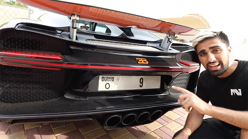 Theo đó, chiếc Bugatti Chiron là siêu xe thể thao kế nhiệm Bugatti Veyron (từng lập lỷ lục xe nhanh nhất thế giới ở mốc 400 km/h vào năm 2005), sản xuất từ năm 2016 đến nay với số lượng giới hạn 500 xe. Tại UEA, giá chiếc siêu xe này vào khoảng 3,5 triệu USD và chiếc trong clip của Mo Vlogs còn đẳng cấp hơn khi đeo biển số độc mỗi số 9. Và giá trị cho chiếc biển số này lên tới 7 triệu USD.