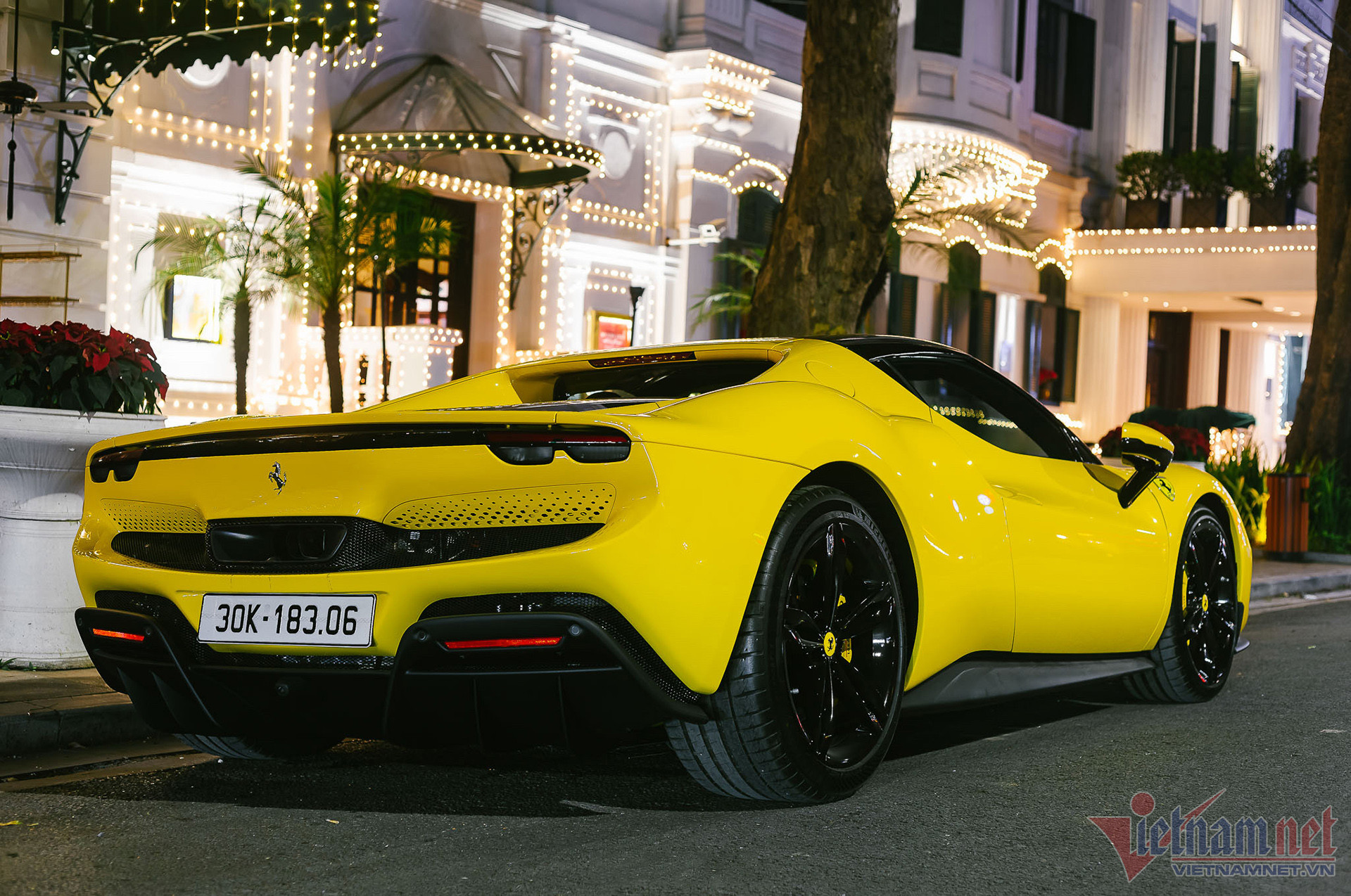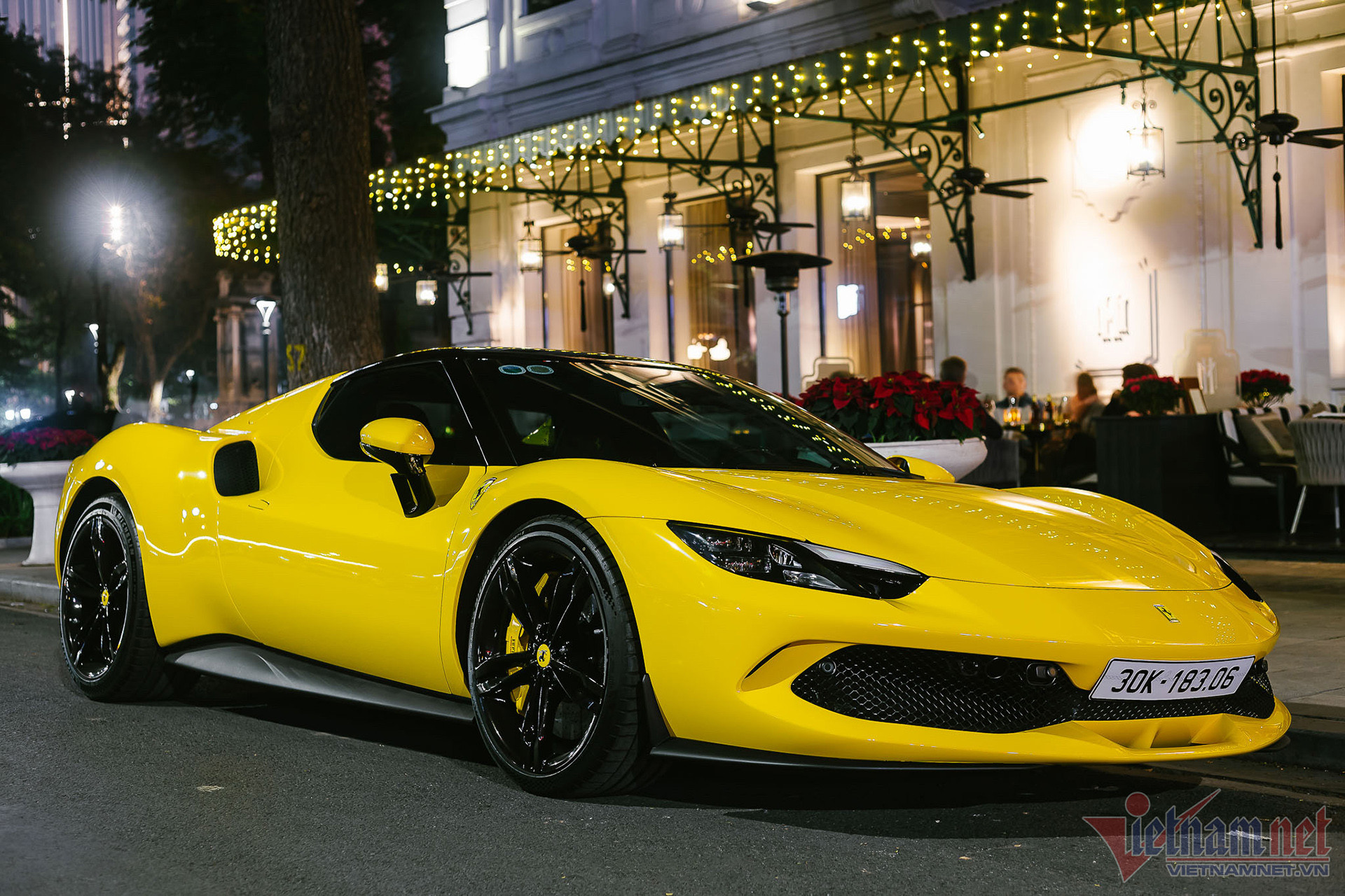 Sau 3.000 km lăn bánh, về cơ bản ngoại thất chiếc Ferrari 296 GTB đầu tiên về Việt Nam vẫn còn mới. Nước sơn màu vàng bóng có tên Giallo Modena của xe khá nổi bật, tô điểm bằng những chi tiết màu đen làm từ vật liệu composite như mui xe, líp cản trước, ốp sườn, bộ khuếch tán đuôi xe.