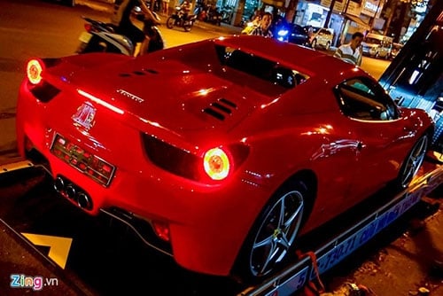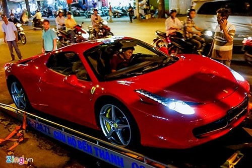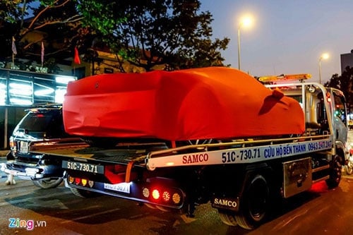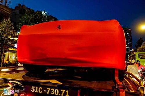 Tối 19/1, một chiếc siêu xe của Ferrari được trùm bạt chở bằng xe cứu hộ trên đường TP HCM khiến nhiều người chú ý. Đây chính là chiếc Ferrari 458 Spider đầu tiên xuất hiện tại Việt Nam. |