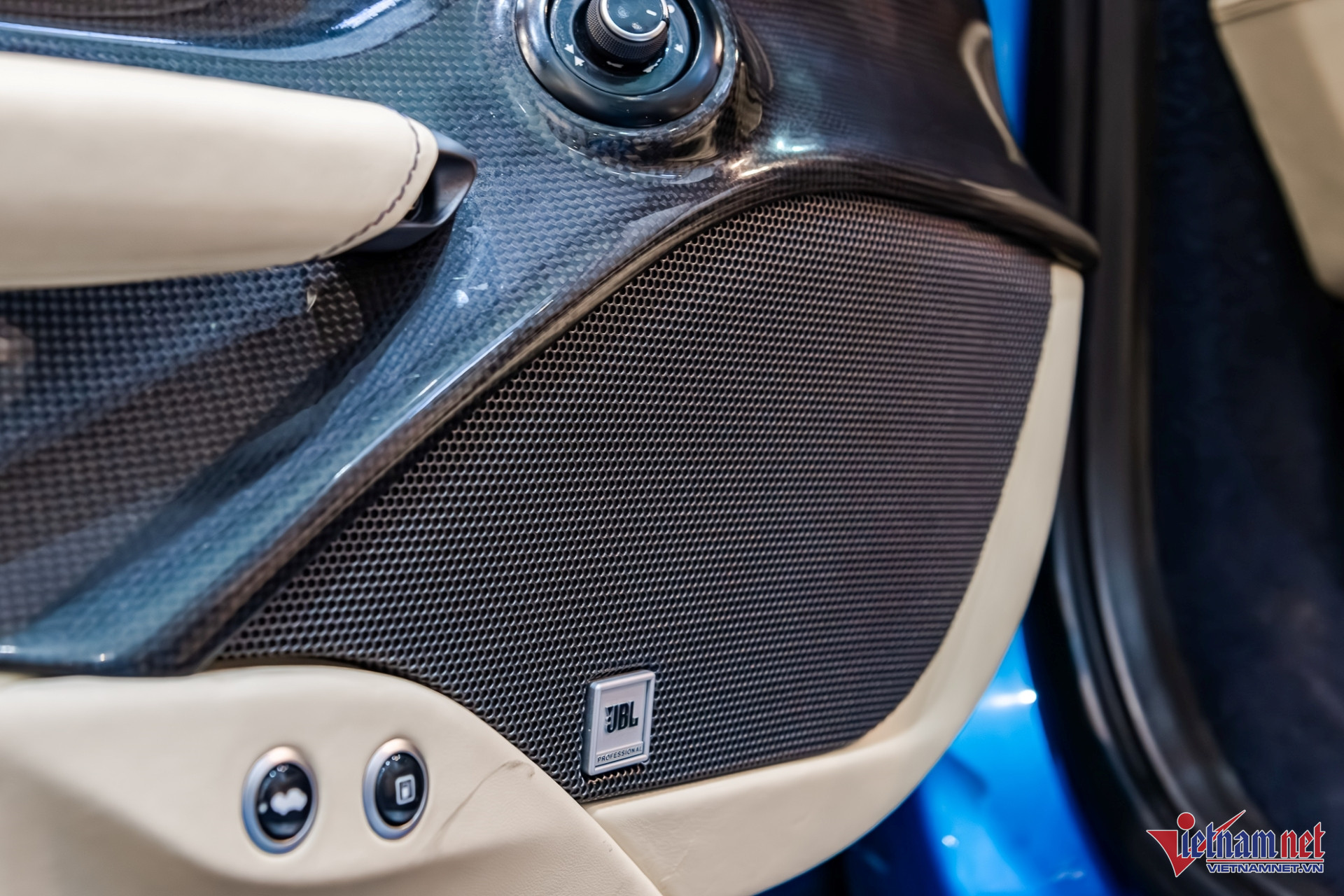 Nhiều vị trí ốp sợi carbon trang trí như táp-pi cửa, cửa gió điều hòa, táp-lô, bảng đồng hồ, vô-lăng, lẫy chuyển số sau vô-lăng và khu vực bảng điều khiển trung tâm. Hệ thống giải trí của xe chỉ đơn giản với hệ thống loa JBL và không có màn hình giải trí.