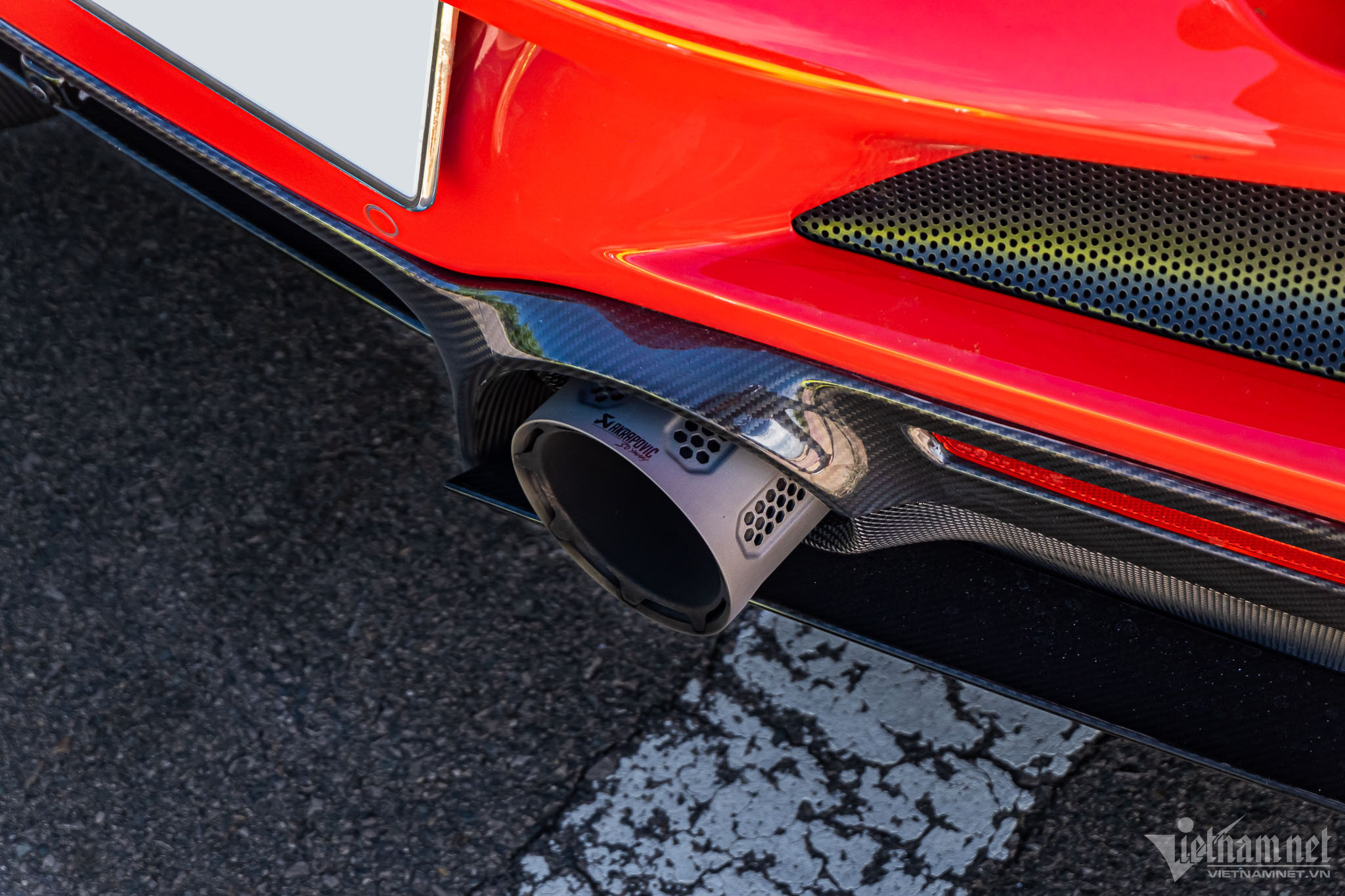 Hệ thống ống xả độ lên loại của Akrapovic, sản xuất giới hạn 30 bộ trên toàn thế giới nhằm đánh dấu cột mốc 30 năm thành lập hãng ống xả này. Bộ ống xả trên chiếc Ferrari F8 Tributo tại Việt Nam mang số thứ tự 24/30, có giá trị gần 24.000 USD (quy đổi khoảng 583 triệu VNĐ). Ống xả này nhẹ hơn 7,7 kg so với ống xả nguyên bản, đồng thời tăng thêm 17,9 mã lực và 33,6 Nm.