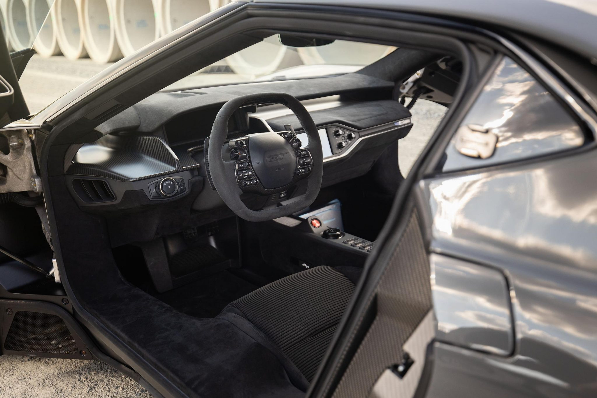Bộ la-zăng của xe là loại 5 chấu kép, làm bằng chất liệu carbon. Phía trong nổi bật với cùm phanh Brembo màu đỏ. Tùy chọn bộ mâm này đã có trên chiếc Ford GT đầu tiên về Việt Nam, nhưng đi kèm với kẹp phanh màu xám ít nổi bật hơn.