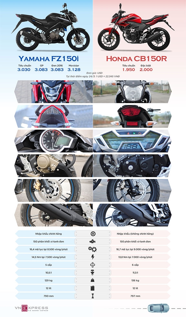 28/03/2016 15:28So sánh Yamaha FZ150i và Honda CB150R tại Việt Nam