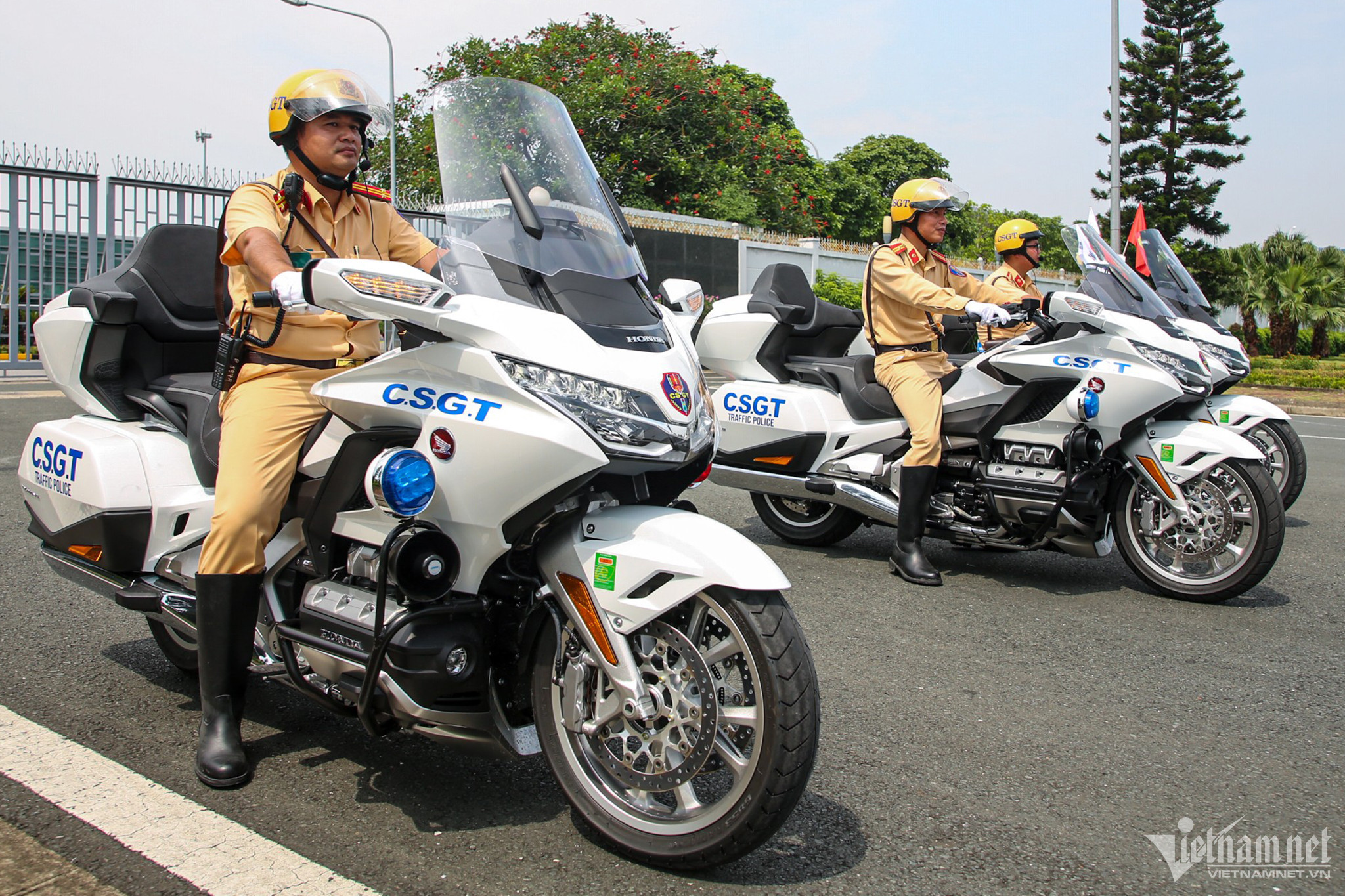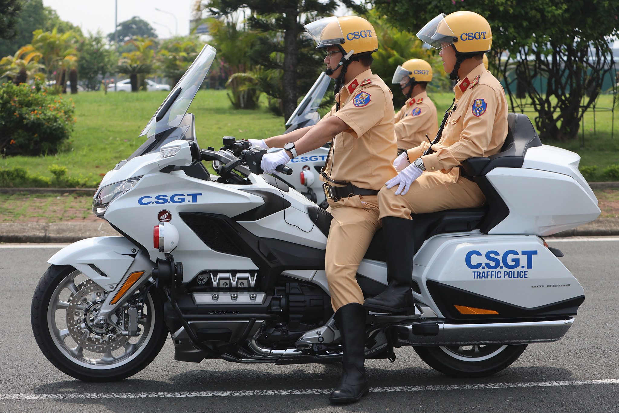 Đây là dòng xe Honda Goldwing 2023 mới được trang bị với số lượng 30 chiếc, sẽ được biên chế cho lực lượng CSGT dẫn đoàn thuộc Cục CSGT và công an các địa phương.