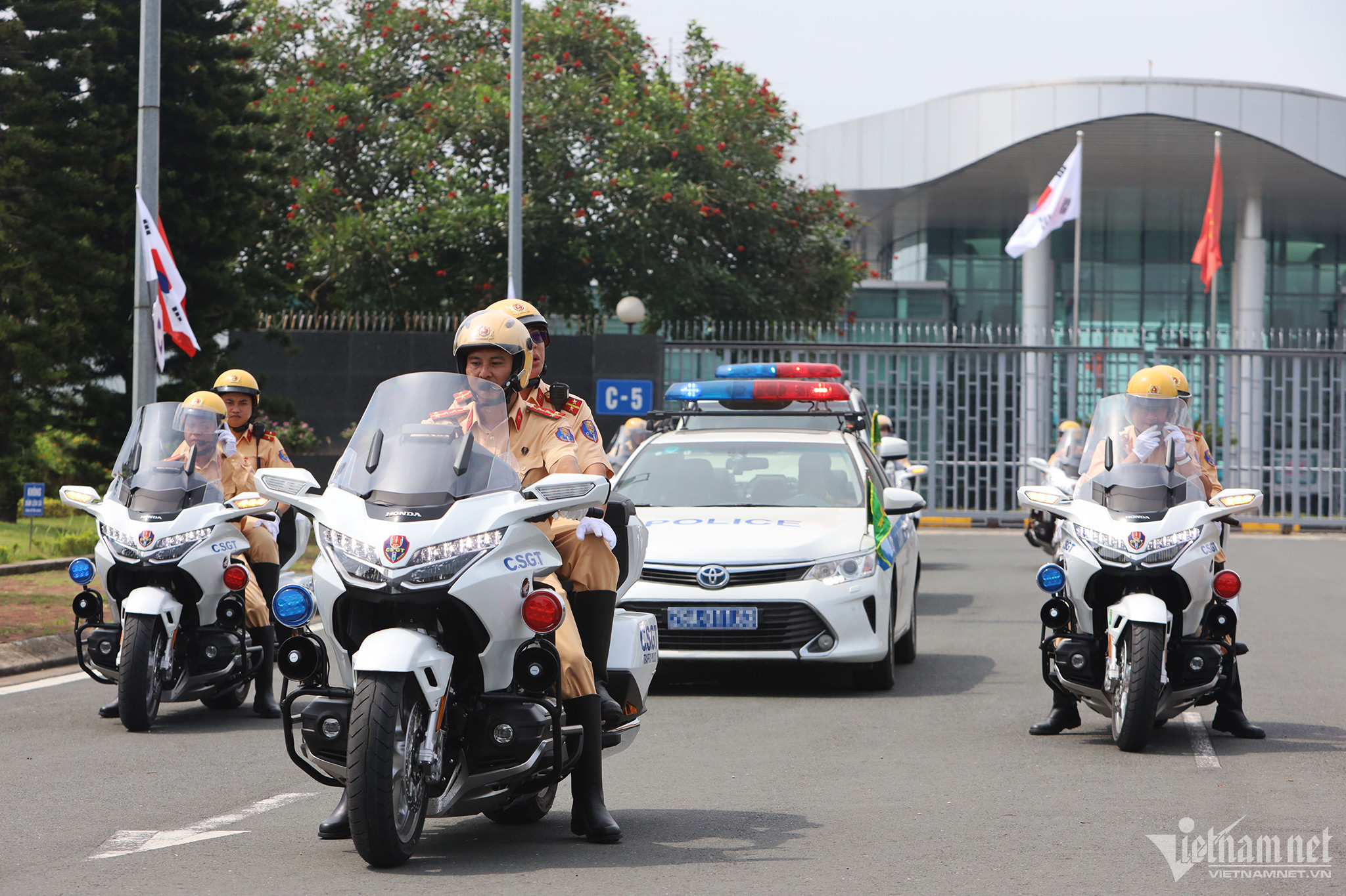 Xuất hiện trong đoàn hộ tống Tổng thống Hàn Quốc Yoon Suk-yeol khi đến thăm Việt Nam, những chiếc mô tô phân khối lớn của Đội CSGT Tuần tra Dẫn đoàn, Phòng CSGT Hà Nội nổi bật trên phố với kích thước to lớn và dáng vẻ bệ vệ.
