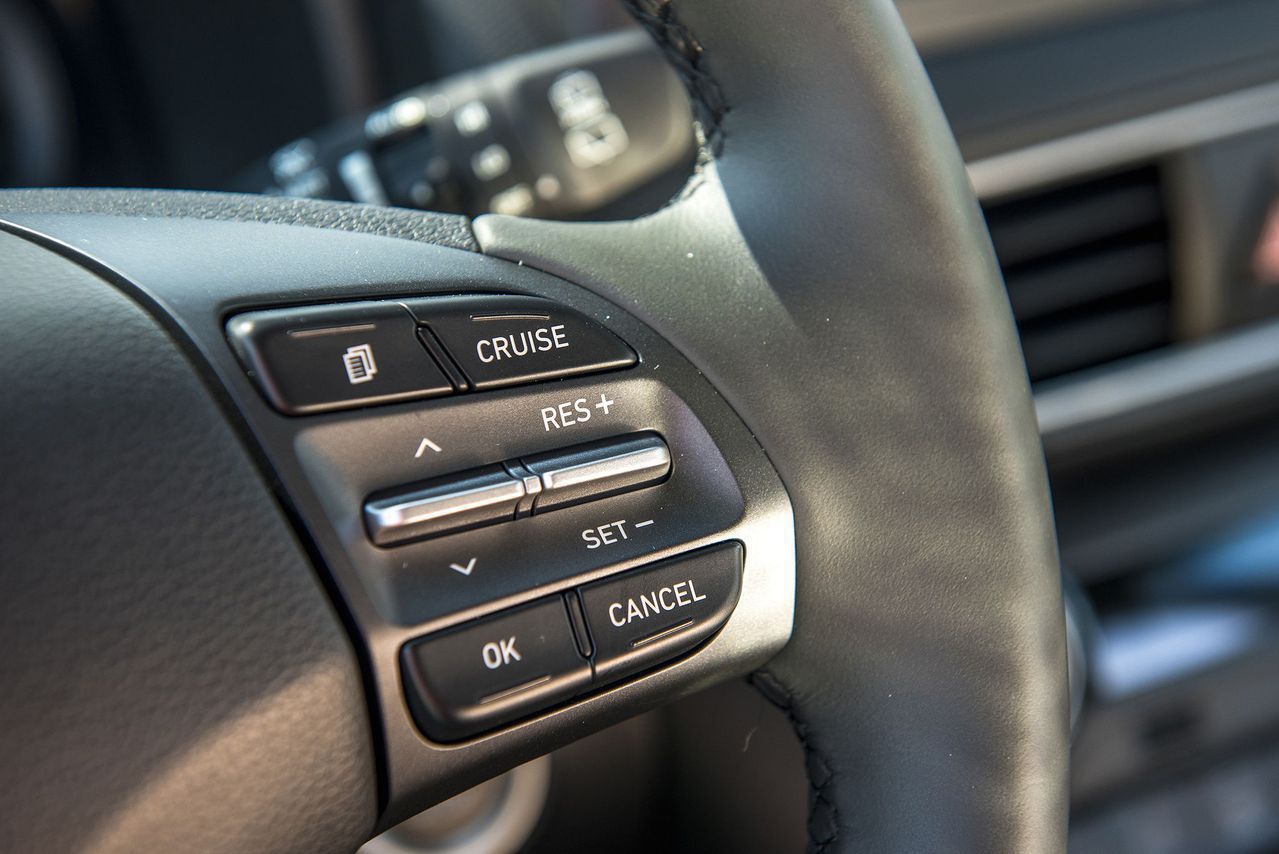Vô lăng của EcoSport và Kona đều được bọc da, tích hợp các nút chức năng như điều chỉnh âm thanh, đàm thoại rảnh tay hay ga tự động Cruise Control.