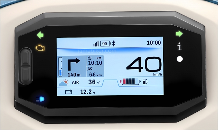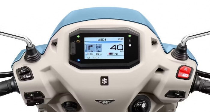 Cụm đồng hồ kỹ thuật số hoàn toàn của Access với Suzuki Ride Connect có màn hình Transistor màng mỏng (TFT) màu 4,2 inch với bố cục rõ ràng và trực quan, cung cấp thông tin mà người lái cần. Với hình ảnh sáng hơn, tốc độ làm mới nhanh hơn, tỷ lệ tương phản cao hơn và màu sắc chính xác hơn, màn hình cung cấp khả năng hiển thị tối đa cả ngày lẫn đêm và trong mọi tình huống lái xe.