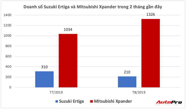 Suzuki Ertiga được giới thiệu tới khách Việt từ cuối tháng 6/2019 với kỳ vọng doanh số khoảng 1.000 xe/tháng. Khi đó, đây được xác định là đối thủ đáng gờm của Mitsubishi Xpander - mẫu MPV có lượng xe bán ra hàng tháng luôn vượt qua mốc 1.000 chiếc. Tuy nhiên, sau hơn 2 tháng đầu mở bán, kết quả không như mong đợi. Doanh số tháng 7 và tháng 8 của Ertiga lần lượt chỉ là 370 xe và 210 xe.