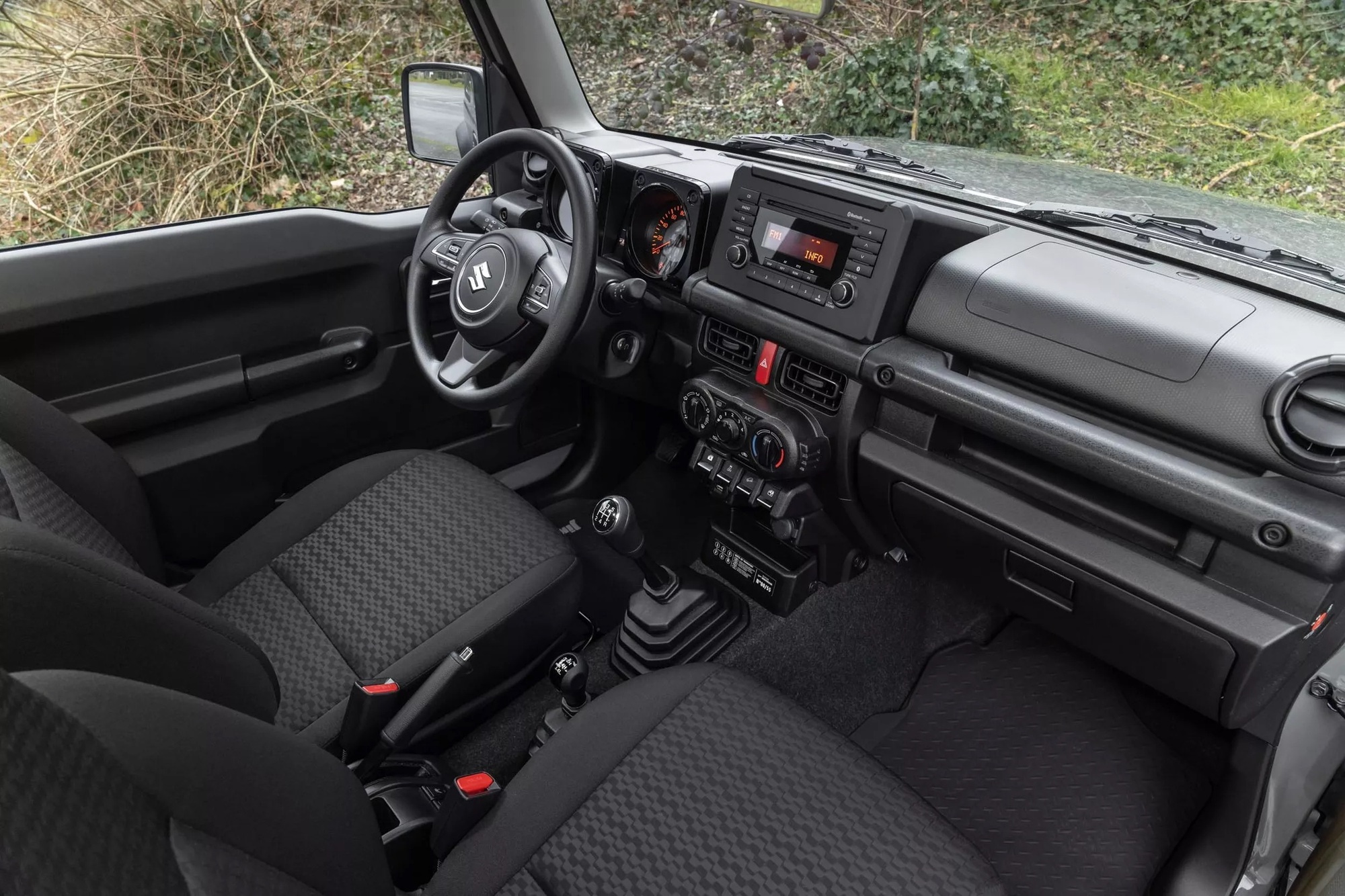 Tiện nghi trên xe tương đối cơ bản như điều hòa, ghế sưởi, kết nối Bluetooth, cảnh báo làn đường, đèn pha tự động và nhận diện biển báo giao thông. Tuy nhiên, Jimny 55th Anniversary không được trang bị màn hình thông tin giải trí 9 inch và đèn LED như các mẫu cao cấp hơn.