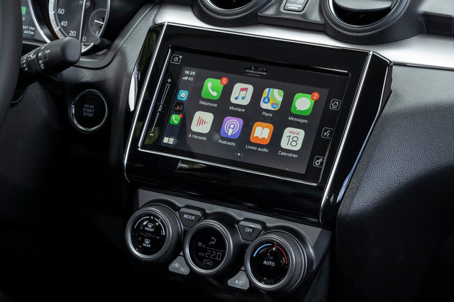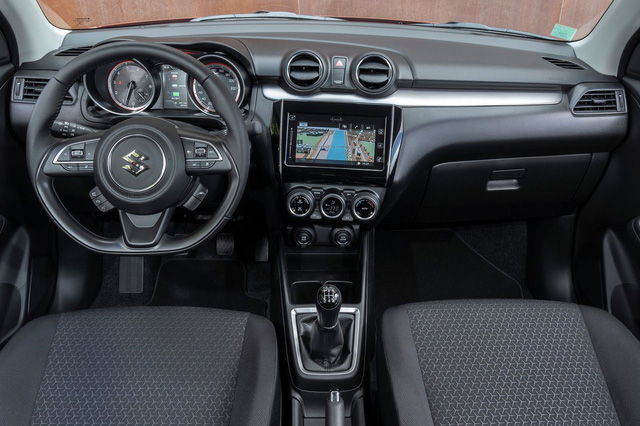 Nội thất xe có chi tiết mới mẻ dễ nhận ra là màn hình lớn 8 inch thay cho loại 7 inch cũ, hỗ trợ Apple CarPlay và Android Auto. Các trang bị còn lại gần như không đổi, bao gồm đề nổ bằng nút bấm, điều hoà tự động... cho đến ghế bọc nỉ. Trong phân khúc hatchback hạng B, chỉ có Swift vẫn giữ loại ghế nỉ này, trong khi các đối thủ đều dùng ghế da.