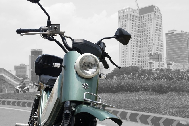 Vốn yêu thích các dòng moped như Mobylette, Candy, Peugeot… Anh Quốc một thợ sửa và độ xe tại TP HCM đã ứng dụng kiểu dáng của những chiếc xe cổ những năm 50, 60 thế kỷ trước vào trong bản độ của mình với bình xăng dài ôm trọn trục xéo của sườn xe. Trái tim của chiếc xe vẫn là khối động cơ của Suzuki Viva 115 Fi.