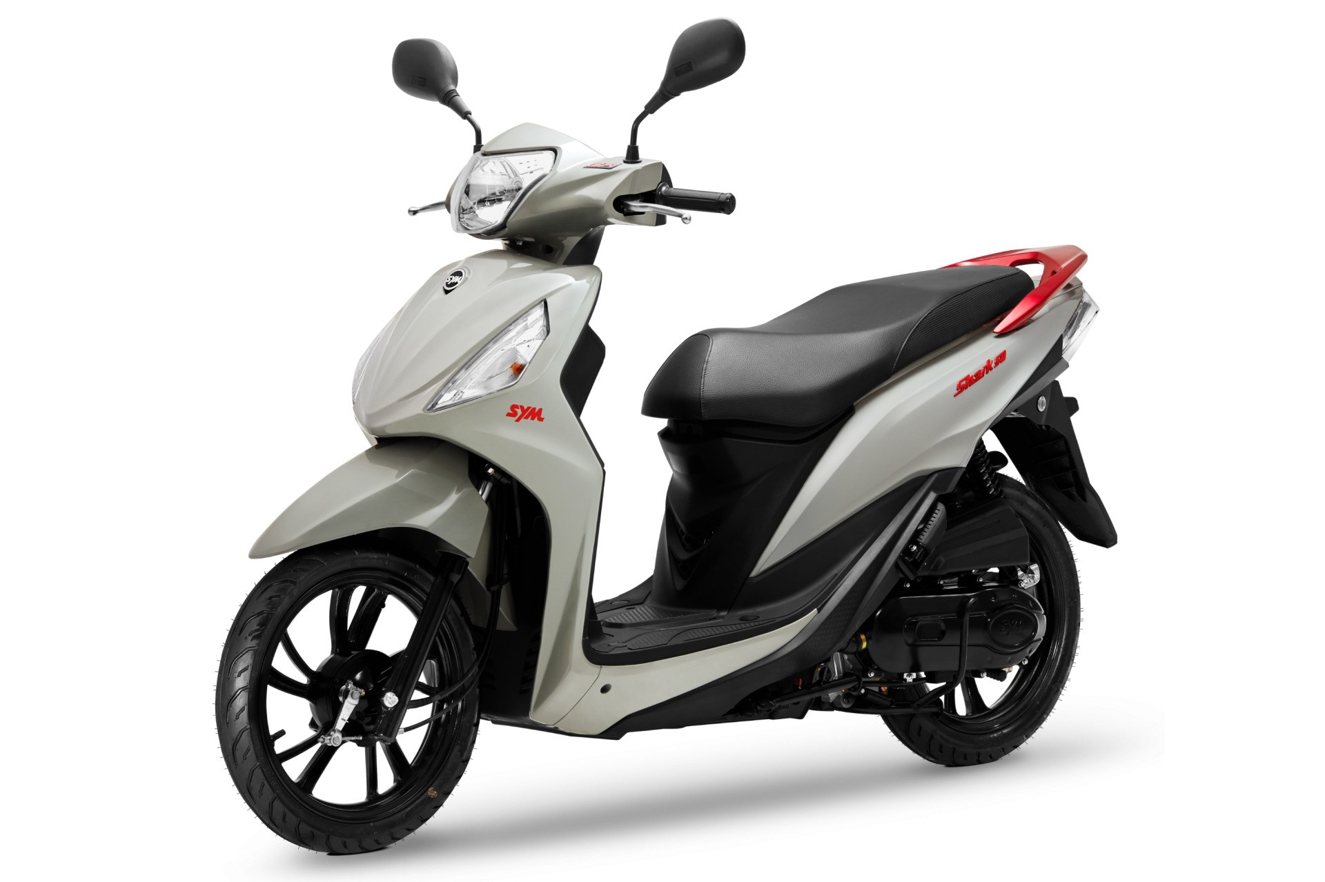 Về ngoại hình, SYM Shark 50 có kích thước nhỏ gọn, phù hợp di chuyển trong đô thị với chiều dài 1.931 mm, rộng 665 mm, cao 1.096 mm, chiều dài cơ sở 1.335 mm và khoảng sáng gầm 110 mm. Màu xám đen mới mang lại vẻ sang trọng với logo sơn đỏ, gợi nhớ phong cách xe tay ga cao cấp. Tổng thể xe được đánh giá tương tự Honda Vision.