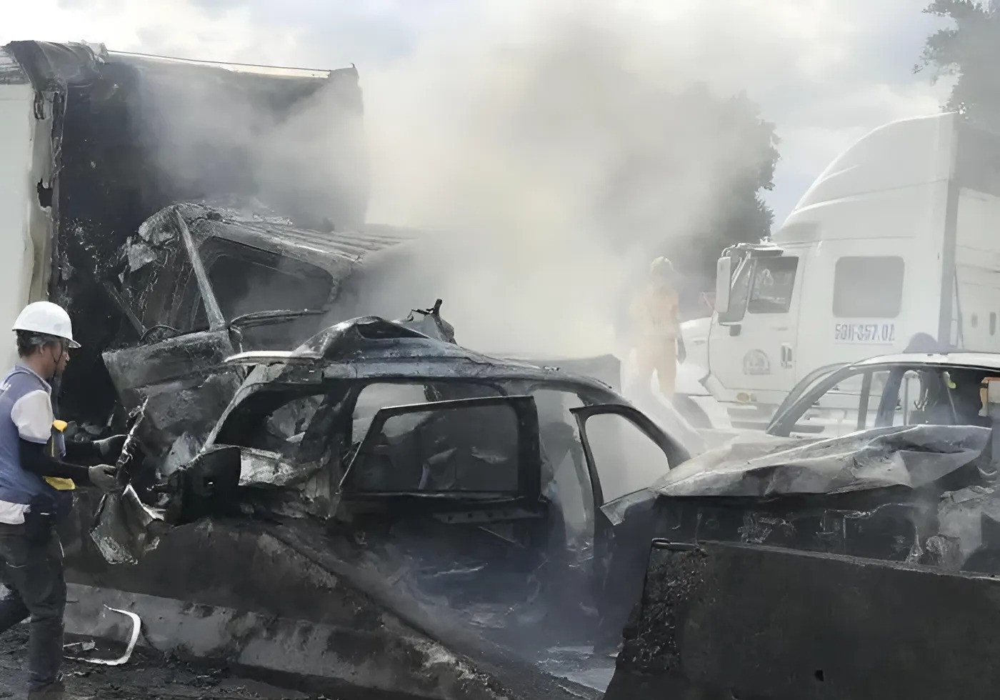 Đó là trường hợp của anh L.K.L (SN 1983, trú tại quận 4. TP.HCM), tài xế chiếc xe Volvo XC90 BKS: 51K-941.XX bị đâm dồn toa. Theo hình ảnh từ hiện trường, chiếc xe tải mất phanh khi xuống dốc cầu Phú Mỹ, đâm mạnh vào chiếc Volvo XC90 màu đen và các xe ô tô con khác rồi húc dồn toa vào đuôi xe đầu kéo phía trước. Chiếc SUV hạng sang bị "kẹp chả" ở giữa, bẹp rúm ró. Thông thường trong nhiều vụ tại nạn tương tự, người ngồi trong xe sẽ khó giữ được tính mạng khi bị "kẹp" trong một thân xe biến dạng nặng nề.