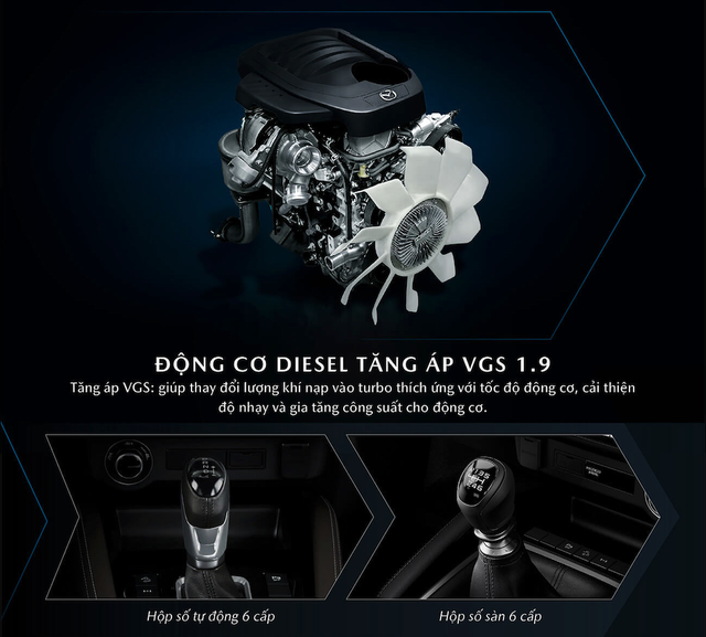 Cả 4 phiên bản của Mazda BT-50 2021 dùng chung động cơ tăng áp VGS 1.9L của Isuzu, cho công suất tối đa 148 mã lực và mô-men xoắn 350 Nm, kết hợp hộp số sàn 6 cấp hoặc số tự động 6 cấp. Khả năng vận hành off-road được hỗ trợ bởi một loạt tính năng, trang bị như tấm thép bảo vệ gầm dưới động cơ và hộp gài cầu, khóa vi sai cầu sau và gài cầu điện tử (2H, 4H và 4L). Mazda BT-50 2021 có thể lội nước cao 800mm.