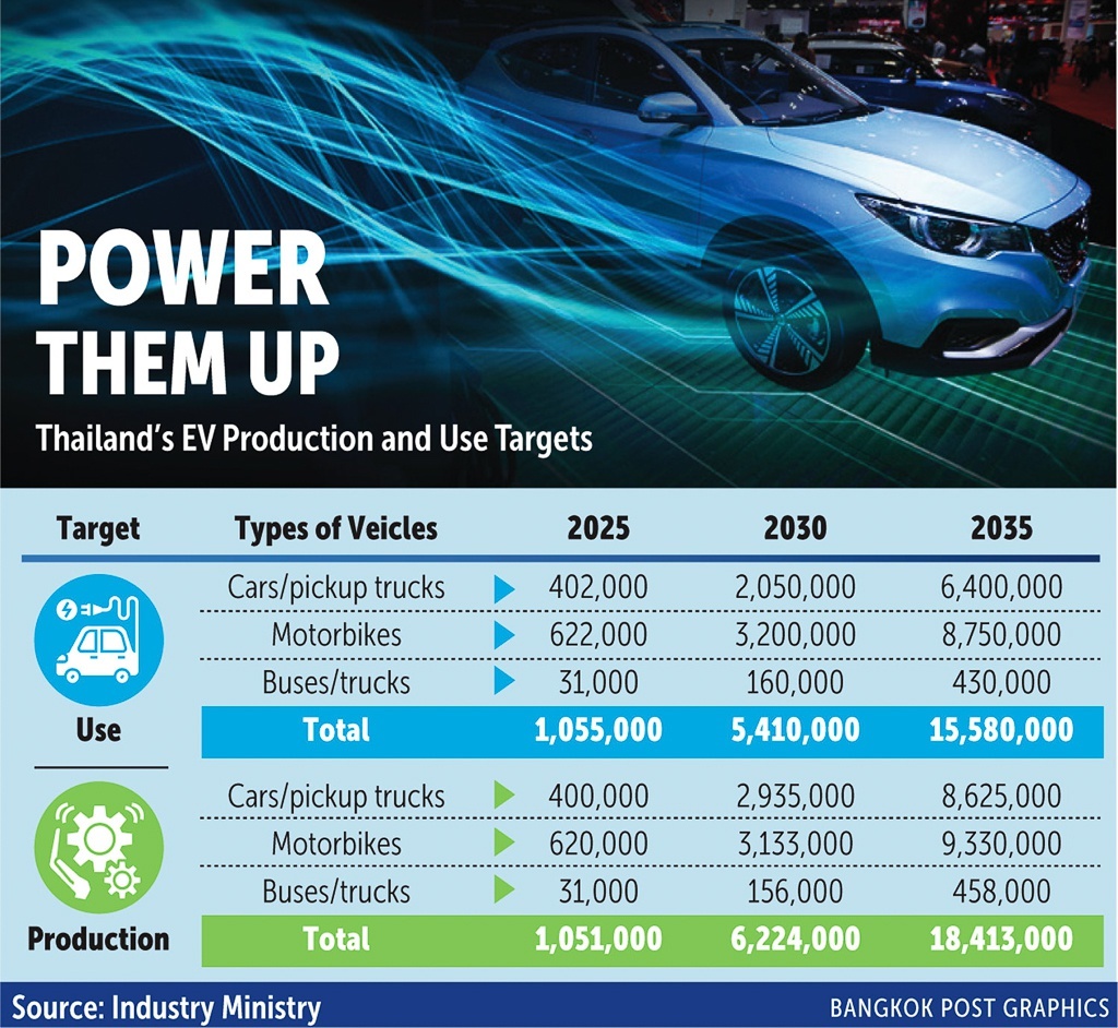 Kế hoạch mới của Thái Lan công bố trong năm 2021 đã đặt ra mục tiêu đến cuối thập kỷ này sẽ có 50% lượng xe điện được đăng ký mới trong nước, tăng so với con số 30% được đặt ra trước đó. Đến năm 2035, Thái Lan dự tính sẽ có gần 15,6 triệu ô tô điện lưu hành và sản xuất đạt hơn 18 triệu xe.