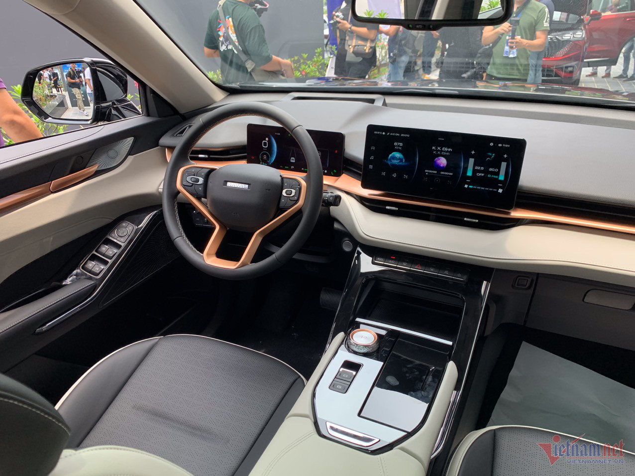 Nội thất có điểm nhấn là bộ 3 màn hình: màn hình trung tâm người lái 10,25 inch, màn hình giải trí cảm ứng 12,3 inch và màn hình HUD hiển thị thông số lên kính lái với kích thước 9 inch. Vô-lăng ba chấu bọc da, tích hợp nút bấm, ghế bọc da, ghế lái chỉnh điện 6 hướng, bên phụ chỉnh 4 hướng. Cần số dạng núm xoay điện tử; điều hòa tự động hai vùng, có tạo ion âm, cửa sổ trời panorama.