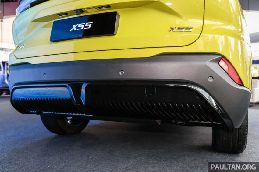 Ngoài ra, X55 còn được trang bị hốc gió trung tâm cỡ lớn, gân dập nổi trên nắp ca-pô, tay nắm cửa dạng trượt, gương chiếu hậu chỉnh điện tích hợp sấy kính, vành hợp kim 18 inch, cánh gió mui chia đôi và cửa cốp chỉnh điện. Phiên bản Luxury sử dụng vành hợp kim 19 inch.