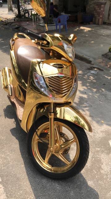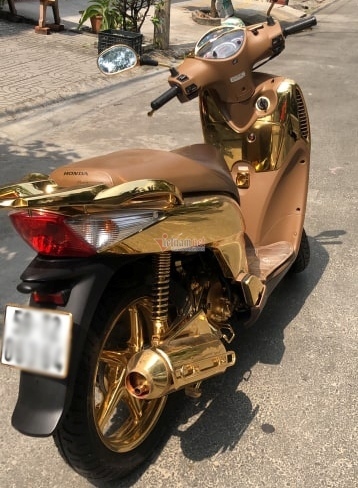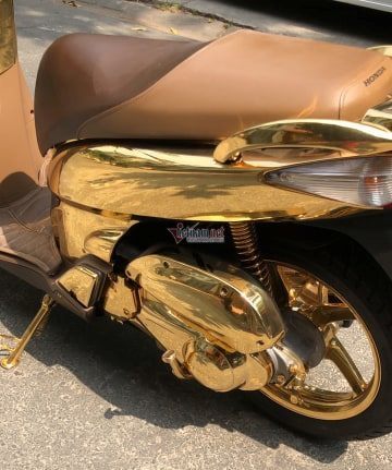 Chủ nhân chiếc xe SH mạ vàng hô giá 1,5 tỷ cho biết, chiếc xe được mạ 100% bằng vàng thật và mất khoảng hơn 3 tháng để hoàn thiện khâu mạ công phu này.