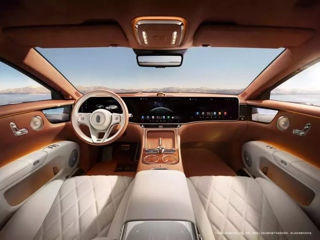 Bên trong, nội thất của S800 gây ấn tượng mạnh với cụm đồng hồ kỹ thuật số, màn hình trung tâm 15,6 inch, màn hình phụ cho hành khách 16 inch, cùng với màn hình hiển thị HUD cỡ lớn. Xe còn được trang bị 2 sạc không dây cho điện thoại và dàn âm thanh lên tới 43 loa, theo trang Autohome. Khách hàng có thể chọn phiên bản 4 chỗ với ghế “thương gia” phía sau hoặc cấu hình 5 chỗ thông thường.