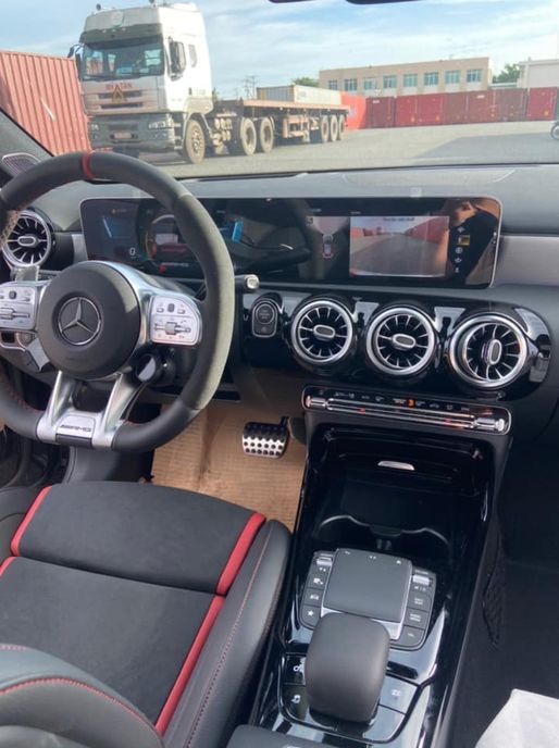 Đối với khoang cabin, tông màu đỏ/đen là gam màu được lựa chọn để sử dụng trên chiếc Mercedes-AMG A 45 S này. Bên cạnh đó, chiếc xe cũng sở hữu hàng loạt trang bị cao cấp khác như bộ màn hình đôi 10.25 inch cho hệ thống giải trí và đồng hồ công-tơ-mét, vô-lăng 4 chấu và ghế ngồi thể thao, nội thất bọc da Alcantara...
