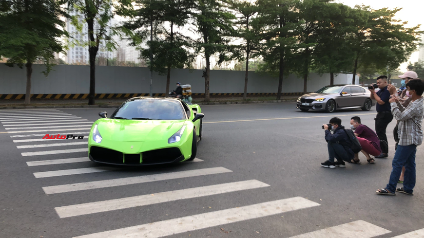 Minh "nhựa" cầm lái chiếc Pagani Huayra tiến vào khu vực đỗ siêu xe. Nhiều người tò mò đến ngắm nhìn chiếc xe trị giá khoảng 80 tỷ đồng.