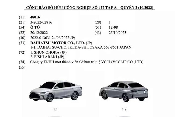 Theo Công báo Sở hữu công nghiệp số mới nhất do Cục Sở hữu trí tuệ đăng tải, Daihatsu – công ty con thuộc tập đoàn Toyota đã đăng ký bảo hộ kiểu dáng công nghiệp tại Việt Nam cho Toyota Vios mới. Hiện ngày Toyota Vios thế hệ mới ra mắt Việt Nam có lẽ không còn xa.
