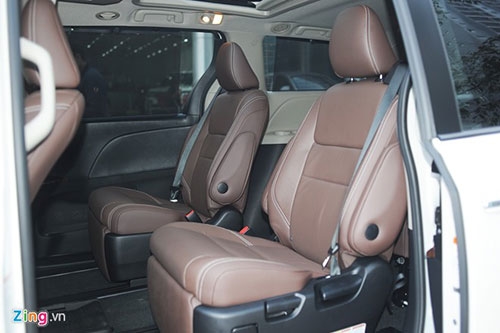 Hàng thứ 2 của mẫu Sienna Limited 2016 này được bố trí 2 ghế tách biệt, trong khi hàng thứ 3 gồm 3 ghế. |