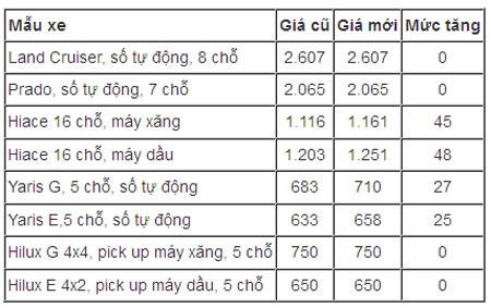 02/10/2015 14:44Toyota Việt Nam tăng giá hàng loạt lần thứ hai trong 2015