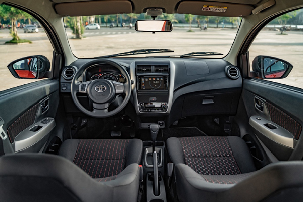Toyota Wigo sở hữu không gian rộng rãi và thoải mái bậc nhất phân khúc xe hạng A. Ở hàng ghế trước, khoảng trống để chân lớn, thoải mái. Hàng ghế sau đủ tựa đầu 3 vị trí. Mặt ghế phẳng, rộng, đủ chỗ cho cả 3 người lớn. Khoảng trần xe và chỗ để chân hàng ghế sau cũng khá thoáng. Đặc biệt, kích thước cửa xe Wigo rộng, ngang ngửa với những xe hạng B, giúp việc ra vào xe thuận tiện hơn. Không gian rộng rãi, kích cỡ cửa lớn chính là một trong những điểm mạnh của Toyota Wigo.