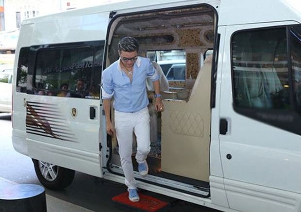 Đầu tiên phải kể đến chiếc xe hãng Ford 16 chỗ của Đàm Vĩnh Hưng. Đây là dòng xe Transit DCar Limited với đầy đủ tiện nghi, được nam ca sĩ tự tay mua và nâng cấp với tổng trị giá hơn 5,5 tỷ đồng. Ngoài xe có in logo thương hiệu của Mr. Đàm.