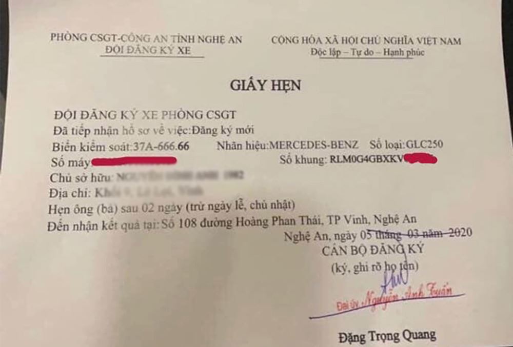 Không chỉ ngũ quý 7, đầu tháng 3 năm nay, một chủ xe ở TP Vinh, Nghệ An cũng may mắn khi bấm được biển số ngũ quý 6 cho chiếc Mercedes-Benz GLC250.