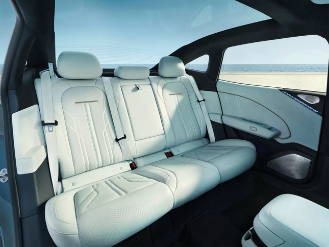 Bên cạnh gói pin công nghệ cao, mẫu xe 007 còn sở hữu nội thất sang trọng với ghế da Nappa tích hợp chức năng sưởi ấm, thông gió và massage cho hàng ghế trước. Tương tự là hàng ghế sau cũng được trang bị chức năng sưởi và khả năng ngả lưng điện lên đến 7 độ.