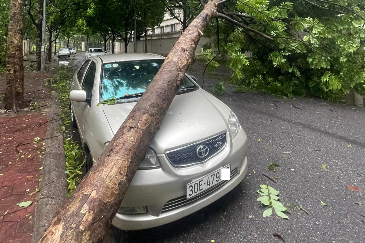 Tại Hà Nội, sức ảnh hưởng của cơn bão số 3 đã làm cho nhiều cây xanh bật gốc, gây tổn hại về người và tài sản. Chỉ trong 2 ngày 6-7/9, tình trạng hàng loạt xe ô tô bị cây đè, cột điện đổ hay bị bảng hiệu rơi trúng đã liên tục được đăng tải trên mạng xã hội.