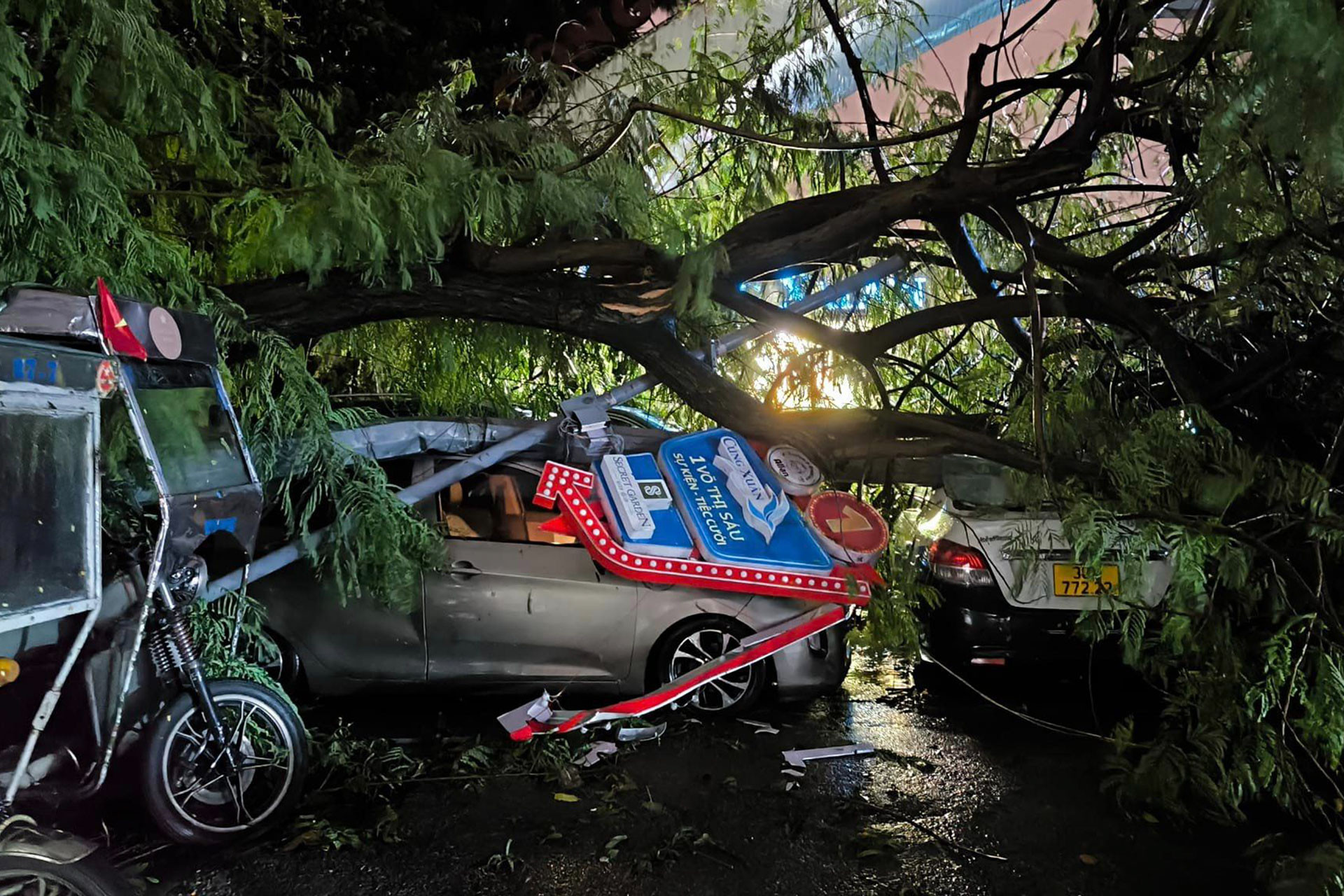 Chủ xe xử lý thế nào khi bị cây đổ đè vào ô tô?