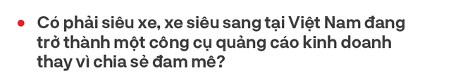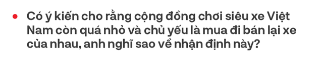 Mình thấy dù ở Việt Nam hay trên thế giới đều vậy cả. Tất cả những món đồ gắn mác “luxury” thường được sử dụng để phục vụ những mục đích khác nhiều hơn là đam mê thuần tuý. Chủ quan mà nói, mình nghĩ trong 100 chiếc siêu xe được bán ra, chỉ có khoảng 20% chủ nhân là mua vì đam mê, còn 80% để sử dụng cho những mục đích khác. Nhưng nhìn về mặt tích cực, đây cũng là lý do khiến việc mua bán siêu xe, xe siêu sang trở nên nhộn nhịp hơn so với vài năm trước đây.