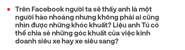 Vẻ ngoài giàu sang với đồ hiệu đầy trên người là những ấn tượng đầu tiên khi gặp anh Vũ Công Tú. Theo anh, đấy là cách dễ hòa nhập vào giới siêu giàu - tệp khách mà anh đang theo đuổi trong nghiệp bán xe. Tuy nhiên, chiếc siêu xe đầu tiên mà anh bán được từ khi trên tay chưa có chiếc đồng hồ Rolex vàng sáng loáng khi gặp tôi…