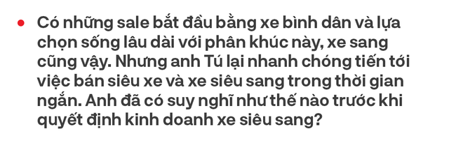 Với mình, khi bán được siêu xe, xe siêu sang, điều mừng nhất không phải là lợi nhuận mà là việc mình đã nâng cao được uy tín của cá nhân. Điều cần nâng cấp nhất và cũng là cách mà mình đã làm, chính là đầu tư cho đam mê. Đừng quá xem nặng vấn đề kinh tế, hãy nuôi dưỡng đam mê của bản thân. Khách hàng mua siêu xe, xe siêu sang, giá bán với họ cũng chỉ là một yếu tố. Cảm xúc của người bán, đam mê của người bán với chiếc xe, những trải nghiệm mà người bán đã có đôi khi lại là điều khiến cho khách hàng đưa ra quyết định xuống tiền nhanh nhất.