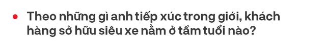 35-50 tuổi. Đối với mình đây là tầm tuổi đẹp nhất để đi siêu xe. Ở tầm tuổi này họ đã có được những sự thành đạt và trải nghiệm nhất định về cuộc sống. Một chiếc siêu xe khiến cho họ phần nào trở nên quyến rũ và hào hoa hơn cả.