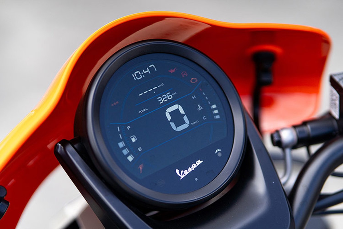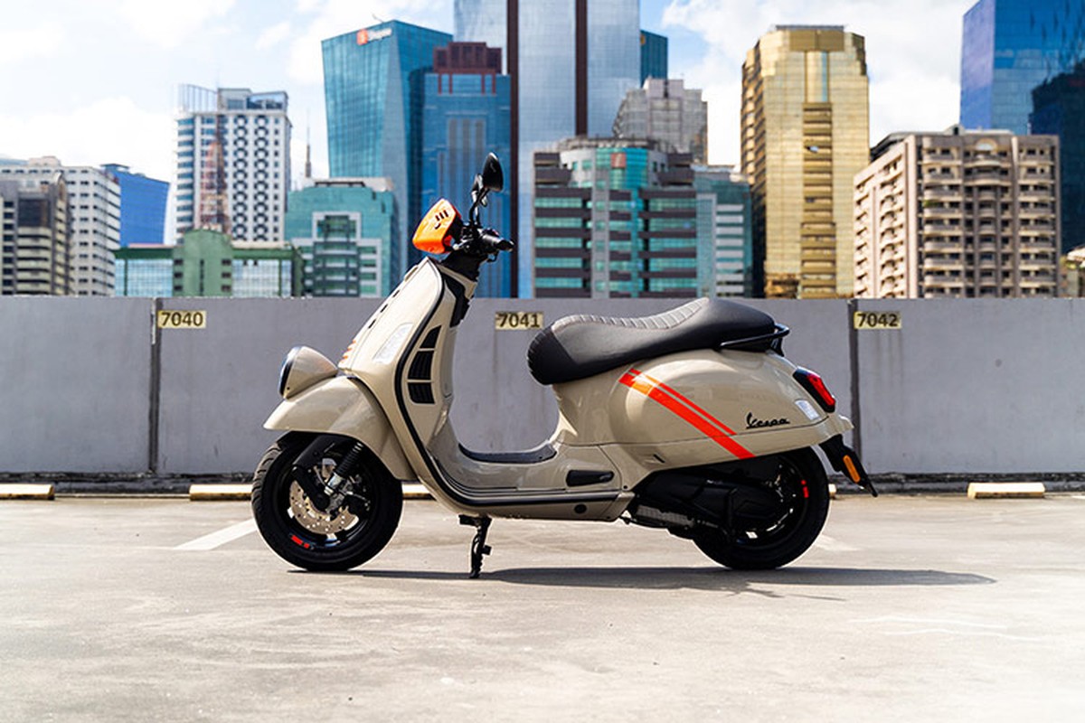 Mẫu xe ga hạng sang Vespa GTV300 2024 thêm màu mới nhìn sang chảnh, cộng với những vệt màu cam nổi bật, tạo sức hút với giới nhà giàu.