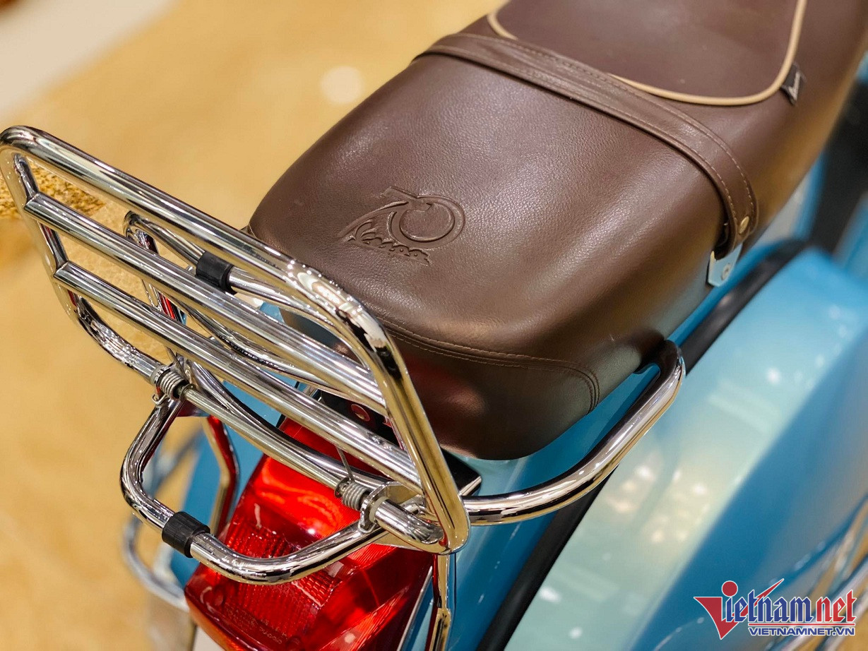 Tuy nhiên, chiếc xe lại sở hữu một số chi tiết rất riêng. Cụ thể, Vespa PX 125 70th Anniversary khoác trên mình dàn áo màu xanh Azzurro trang nhã, yên xe thiết kế mới tạo nên vẻ đẹp thanh lịch nhưng không kém phần hiện đại.