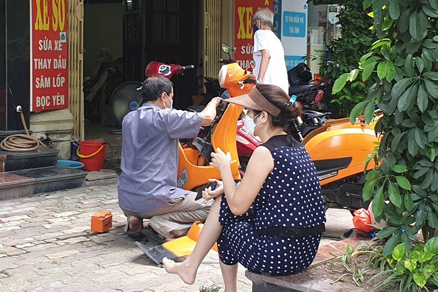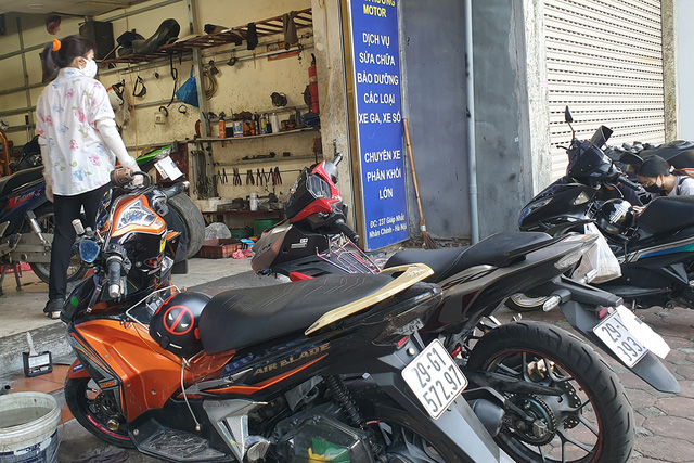 Anh Xuân Hưởng, chủ hiệu sửa chữa xe trên phố Giáp Nhất cho biết, từ ngày thành phố nới lỏng đến nay rất nhiều khách hàng gọi điện đến đăng ký sửa xe, trong đó phần nhiều là do ắc quy bị lỗi.