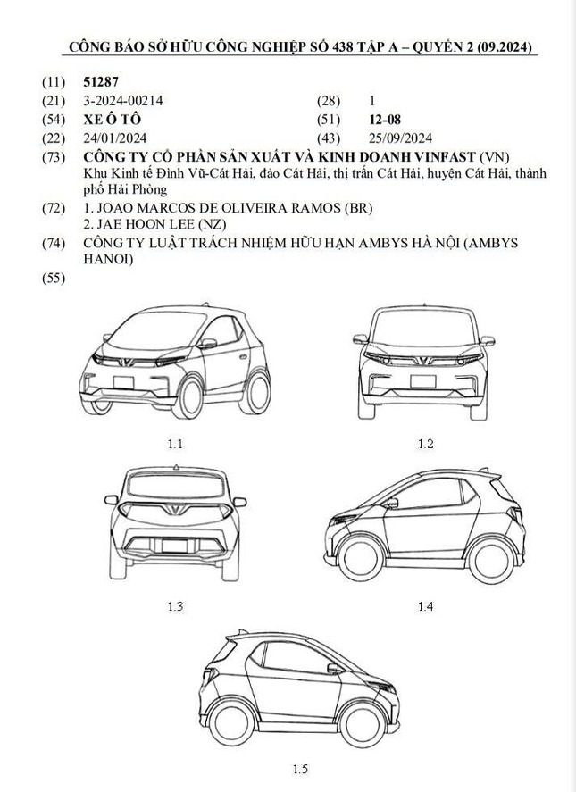 Ngoài ra, đơn đăng ký kiểu dáng công nghiệp của xe được nộp từ ngày 24/01/2024, cho thấy VinFast có thể đang phát triển các bước tiếp theo đối với mẫu xe điện nhỏ gọn mới.