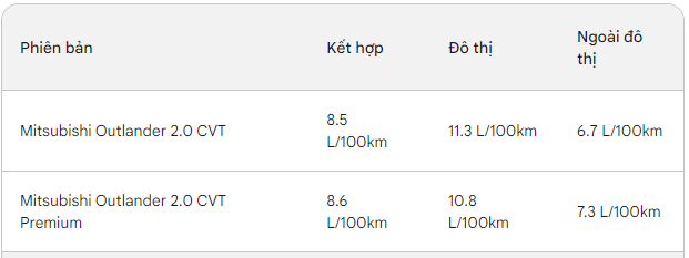 Mitsubishi Outlander: 825-950 triệu, 6.7L/100km