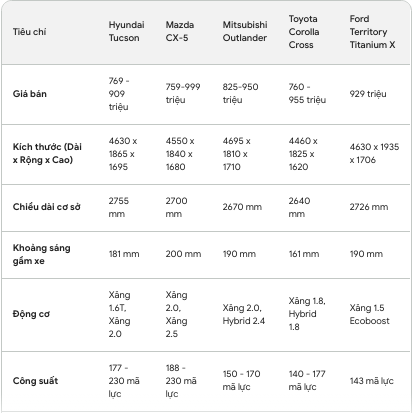 Dưới đây là bảng so sánh vài thông số cơ bản của các mẫu xe gầm cao trong khoảng giá 900 triệu đồng: