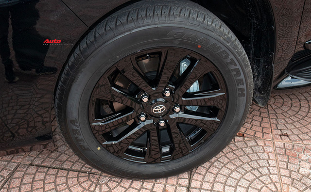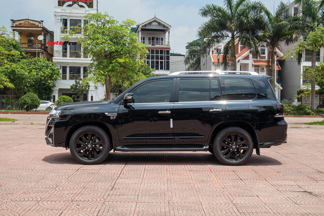 Để giúp các chi tiết ăn nhập với tổng thể, bộ mâm của chiếc Land Cruiser cũng đã được sơn đen bóng, chụp logo bánh xe cũng được dán lại cho đồng bộ. Ở đuôi xe, đèn hậu dán đen, cản sau cũng được thay thế bằng loại hầm hố hơn so với chiếc xe nguyên bản.