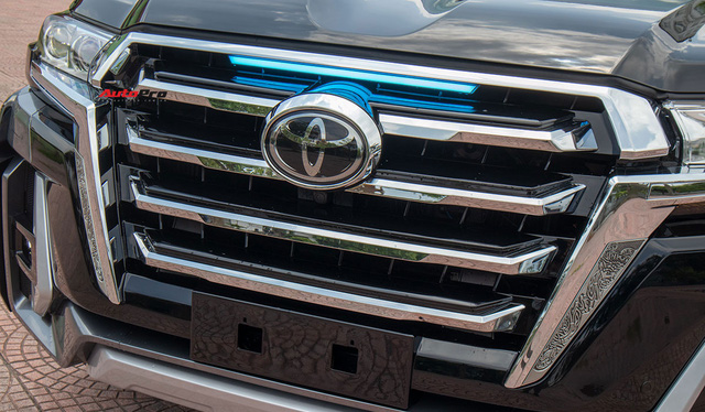 Thay đổi lớn nhất của Toyota Land Cruiser với gói độ Limgene là phần đầu với hầm hố hơn nhờ mặt ca-lăng mở rộng với những thành crom vắt ngang. Dải crom nối liền từ đèn pha đến mặt ca-lăng còn được bổ sung thêm họa tiết khắc hoa văn của gói độ đến từ Trung Đông này. Có lẽ đó là chi tiết tạo nên sự đắt giá của gói độ này mà phải ai đủ tinh tế mới nhận thấy.