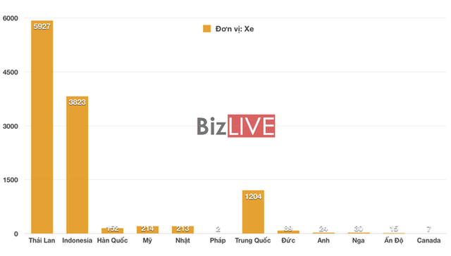 Trong đó, Thái Lan là quốc gia cung cấp nhiều ô tô vào Việt Nam nhất với 5.927 xe, tiếp đến là Indonesia với 3.823 xe và Trung Quốc 1.204 xe.