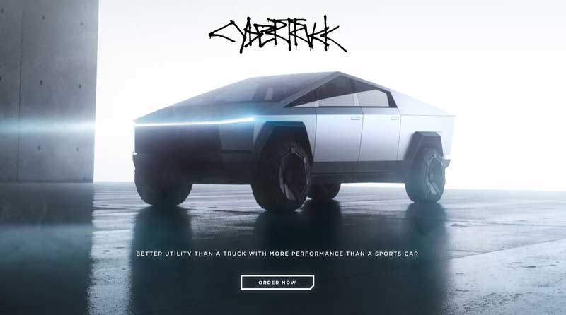 Tesla Cybertruck là chiếc xe bán tải chạy điện đầu tiên của Tesla. Giá khởi điểm của chiếc xe từ 39.999 USD, dự kiến xe sẽ đến tay người mua vào 12/2021. Hiện nay trên website của Tesla đã mở đợt nhận đặt cọc đầu tiên cho chiếc xe này.