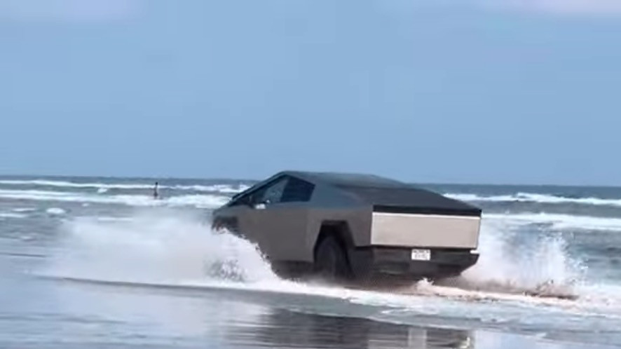 Tuy vậy, người lái chiếc Cybertruck trong video này không hề cố gắng bơi trên biển như lời Elon Musk nói mà thay vào đó chỉ vui đùa trên cát và nhúng 4 bánh xe xuống nước.
